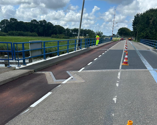 Ter oplossing van een gevaarlijke verkeerssituatie op de brug van de Nieuwsluizerweg is in samenspraak met de gemeente Hollands Kroon besloten om aan beide wegzijden een rode EAB-fietssuggestiestrook aan te brengen. Heijmans heeft hierbij de markering naast de rode EAB aangebracht, waardoor fietsers hier veilig gebruik van kunnen maken.